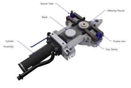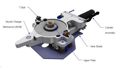 The working refractory parts of the NCM include the upper round fixed nozzle and a replaceable metering nozzle.