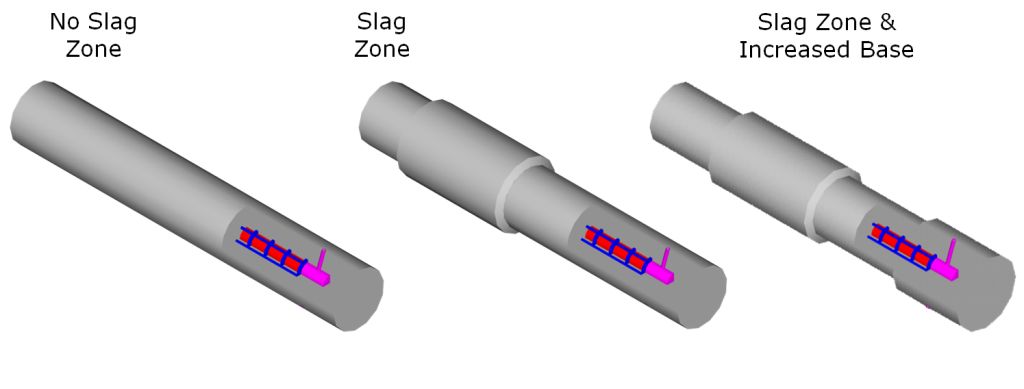 Lance bodies can be ‘zoned’ with different refractory grades to obtain the most efficient wear profile i.e.‘freeboard’ non-metal contact zone / body and/or slagzone material combinations